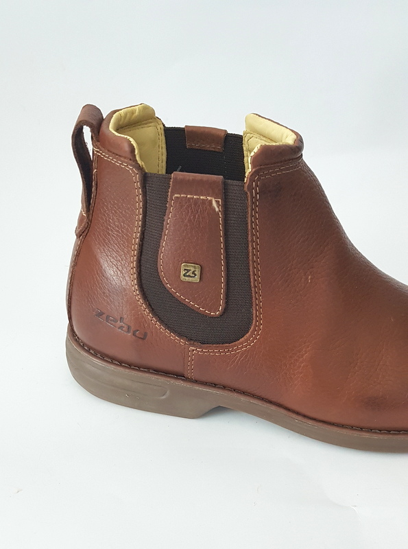 Bota Zebu 59080, estilo botina, em couro liso, elástico laterais.